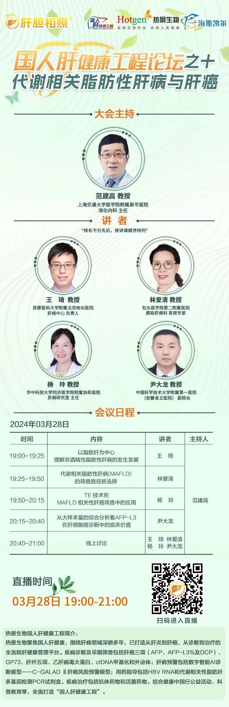直播預(yù)告 | 國人肝健康工程論壇之十——代謝相關(guān)脂肪性肝病與肝癌