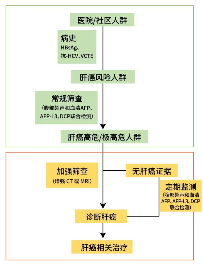 《方案》將病毒性、代謝性慢性肝病患者,特別是伴有肝纖維化、肝硬化患者等肝癌高風(fēng)險(xiǎn)人群列為重點(diǎn)監(jiān)測對象。在隨訪管理過程中檢測血清甲胎蛋白(AFP)、甲胎蛋白異質(zhì)體(AFP-L3)、異常凝血酶原 II(DCP)三項(xiàng)肝癌相關(guān)標(biāo)志物,同時(shí)進(jìn)行肝臟超聲彈性成像、肝臟超聲及其他影像學(xué)檢查。