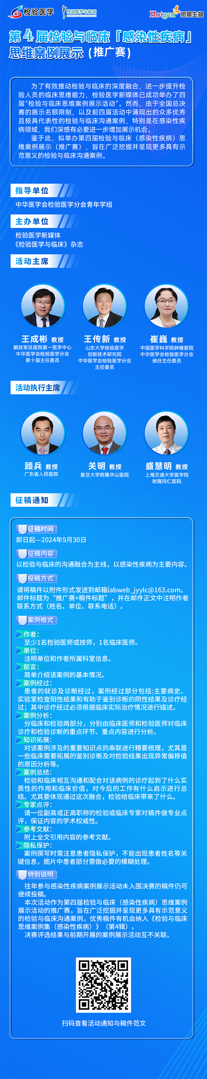 隨著檢驗(yàn)醫(yī)學(xué)專業(yè)的飛速發(fā)展,多學(xué)科協(xié)作診療(MDT)的深入推進(jìn),檢驗(yàn)醫(yī)學(xué)在臨床診療過(guò)程中的地位越來(lái)越高、學(xué)術(shù)地位日益凸顯,并被臨床醫(yī)生稱為“醫(yī)生的眼睛”和“醫(yī)學(xué)界的偵探”。同時(shí),檢驗(yàn)醫(yī)學(xué)是聯(lián)系基礎(chǔ)醫(yī)學(xué)與臨床醫(yī)學(xué)的紐帶,是多學(xué)科的組合體。現(xiàn)代檢驗(yàn)醫(yī)學(xué)倡導(dǎo)以患者為中心,以疾病診斷和治療為目的,加強(qiáng)檢驗(yàn)醫(yī)學(xué)人員學(xué)習(xí)臨床知識(shí),開展檢驗(yàn)與臨床對(duì)話顯得尤為重要。
