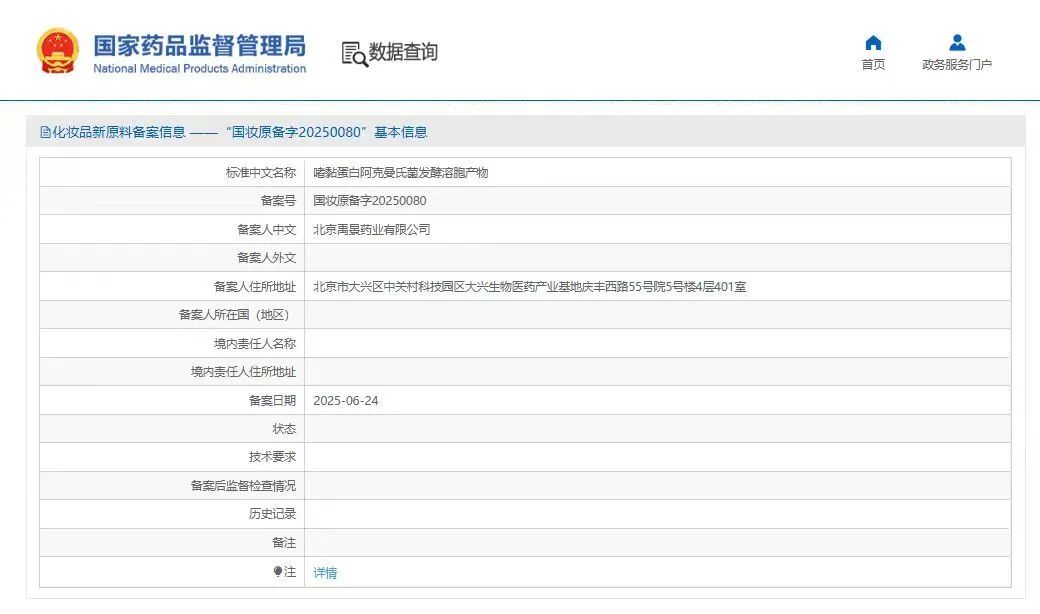 中國北京,2025年6月24日——熱景生物(股票代碼:688068)孵化的北京禹景藥業(yè)有限公司(以下簡稱“禹景藥業(yè)”)自主研發(fā)的Akkermansia muciniphila YG2602(AKK YG2602)成功通過國家藥品監(jiān)督管理局化妝品新原料備案(備案號:國妝原備字20250080),成為全球首個獲批的AKK菌化妝品新原料。