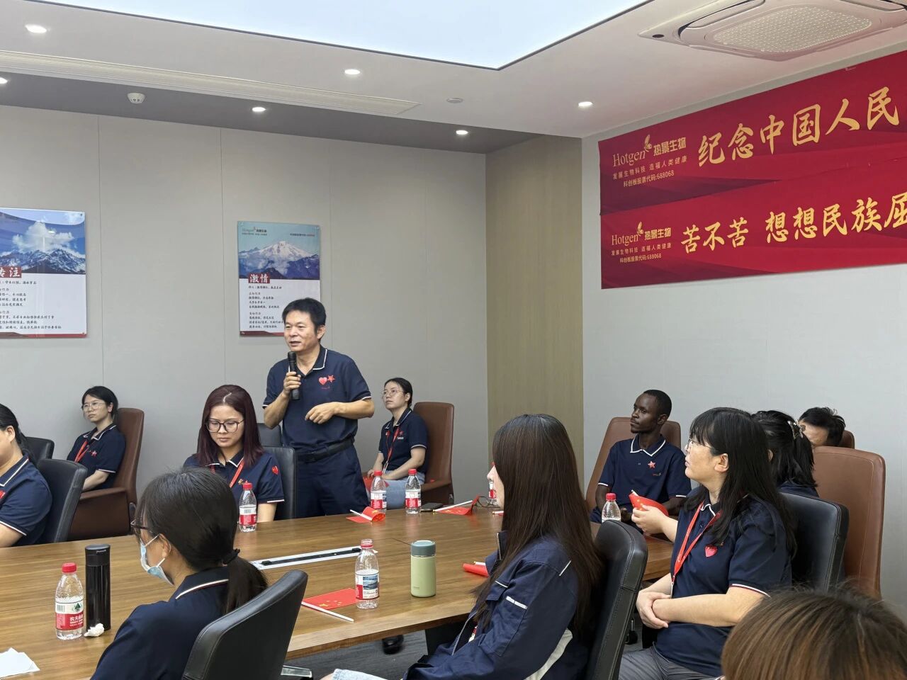 在觀看閱兵式后的交流討論中,各部門代表紛紛上臺發(fā)言,分享自己觀看九三閱兵儀式后的感受和體會。熱景生物副總經(jīng)理石永沾表示,“看到咱們國家國防這么強(qiáng),我特別自豪!新時代青年就得記著歷史、珍惜和平,就如同閱兵式上的將士們堅(jiān)守崗位、履行使命一般,為企業(yè)發(fā)展和國家建設(shè)貢獻(xiàn)自己的力量,為守護(hù)人類健康貢獻(xiàn)自己的力量?!?/span>